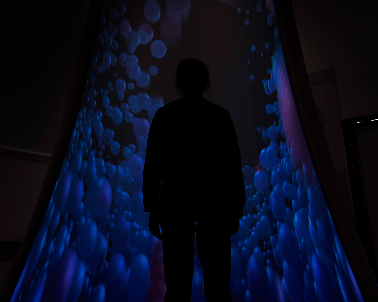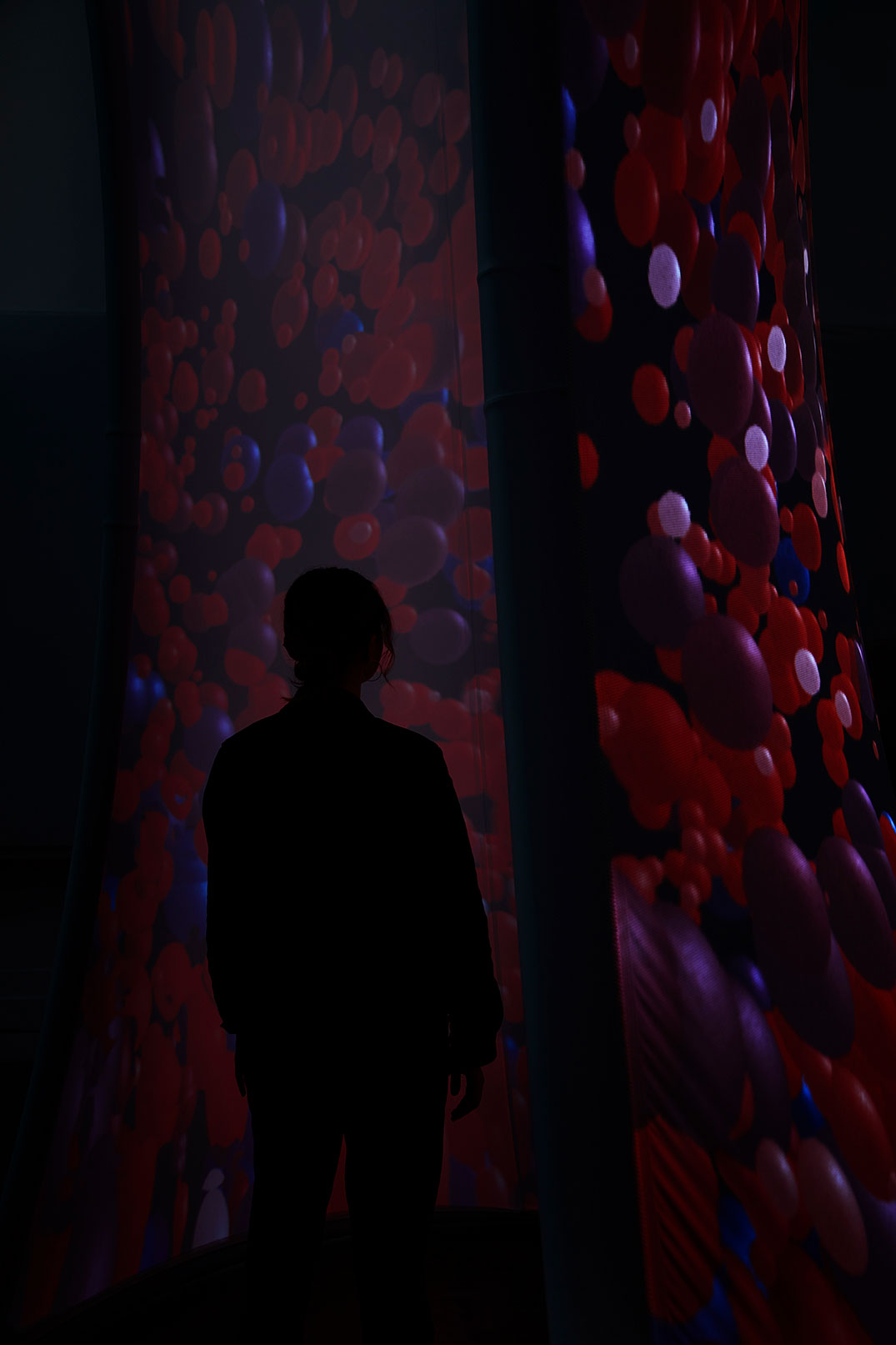 Kalostatis is an interactive installation enacting the unseen flow of the heart. The installation is simulating in 360° the beauty and complexity of the constant flow and motion that keeps us alive, its various extremes and our body’s ability to attain a state of balance, an equilibrium key to our health. This concept of equilibrium within the heart flow can be found throughout nature, raising questions about the dynamic rhythms and flows that rules our world.